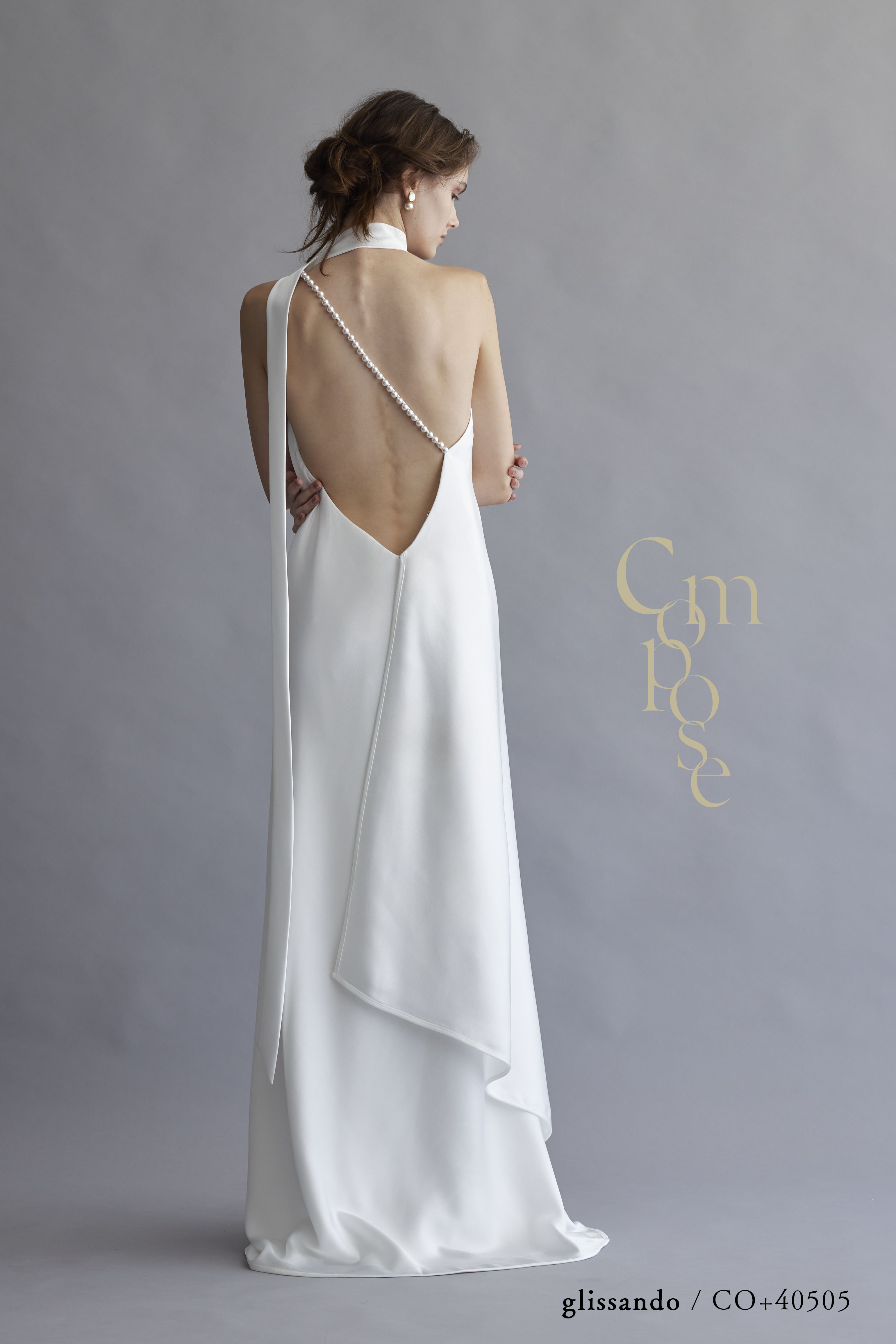 「とろみ」のある落ち感が、スレンダーなシルエットを美しく描き出し、大人っぽく洗練された夏のウエディングスタイルを叶えます。