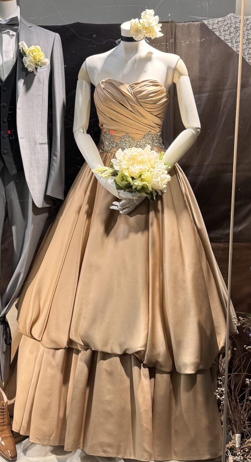 ドレスはゴールドベージュのエレガントなドレス🎵