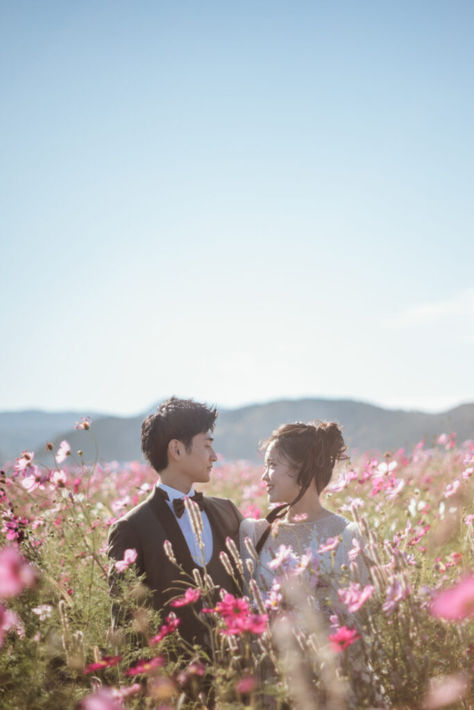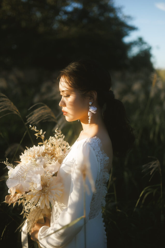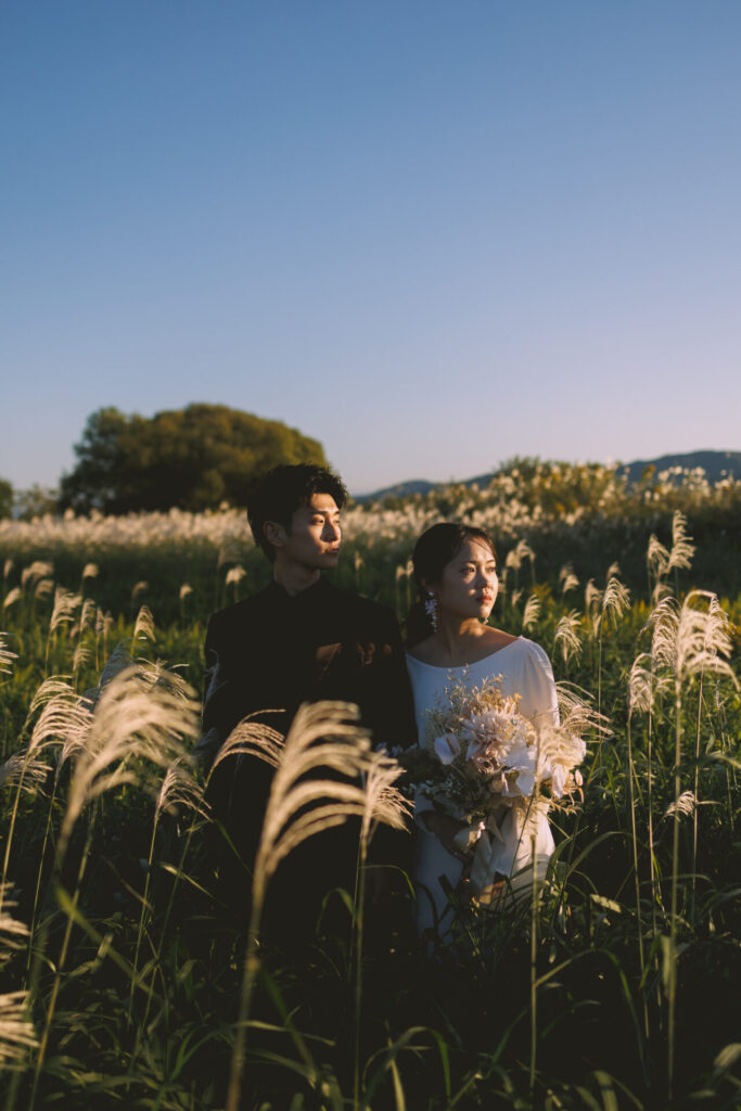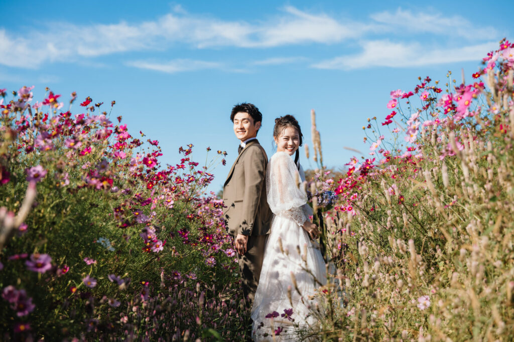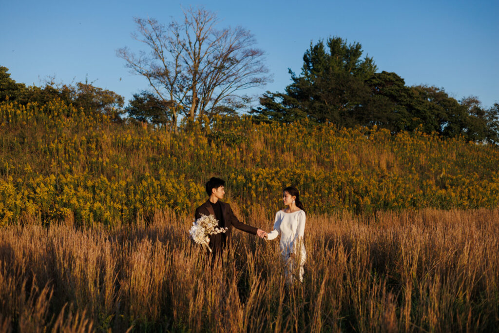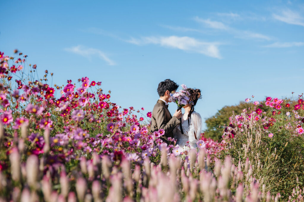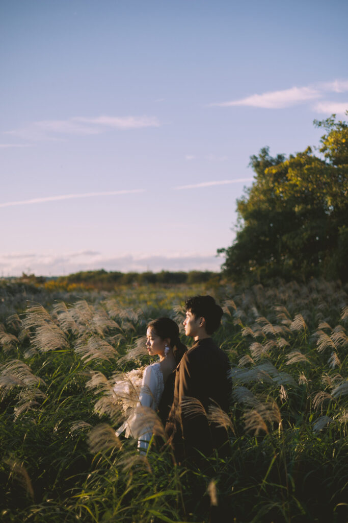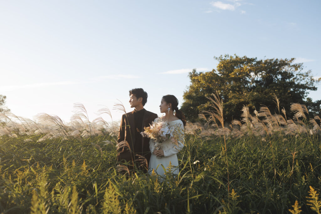 秋、光と風をまとう。ススキとコスモスのロケーションフォトウエディング