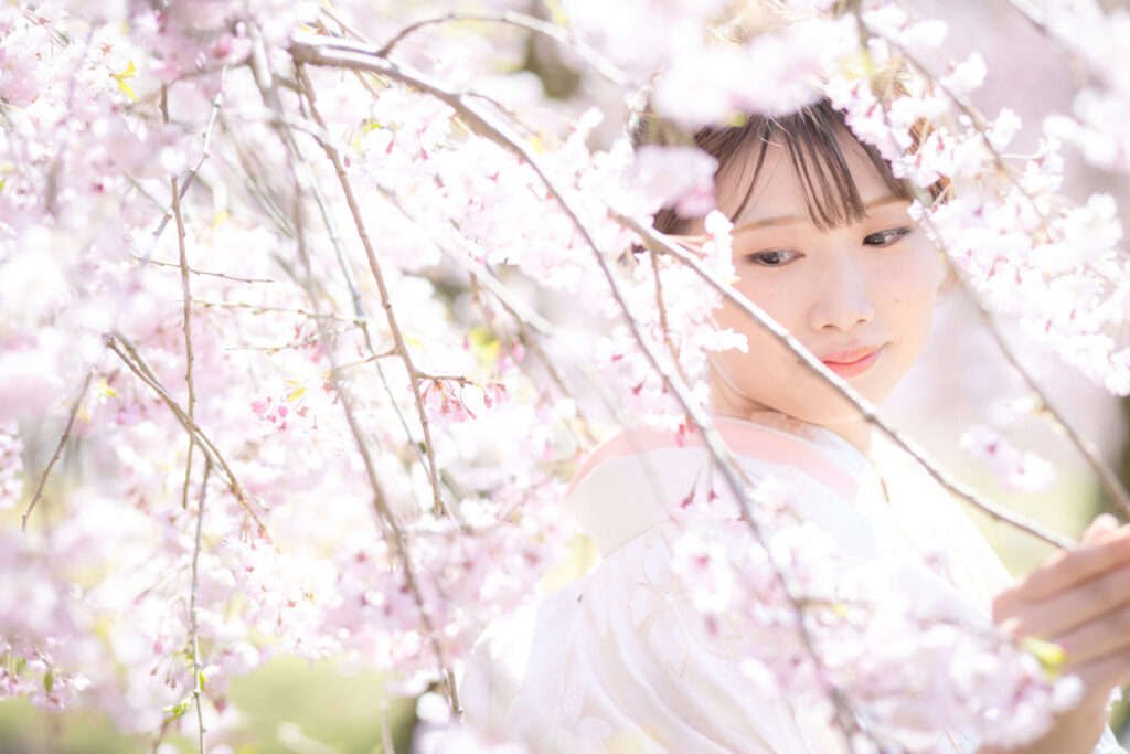 和装を合わせることで、写真全体が「日本の春そのもの」になります。