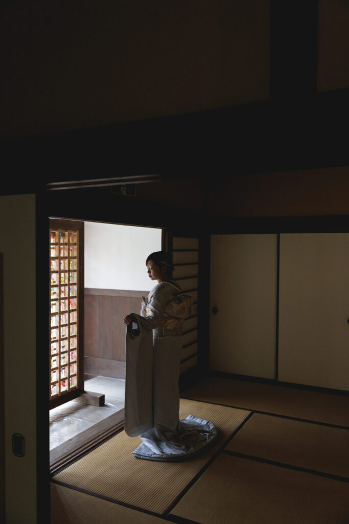 障子越しのやわらかな自然光は、肌を均一に整え、過度な演出をしなくても、品のある一枚に仕上がります。