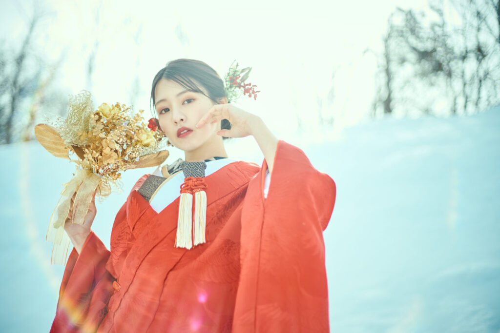 白無垢は雪と溶け合い、清らかで神秘的な雰囲気を創り出してくれます。