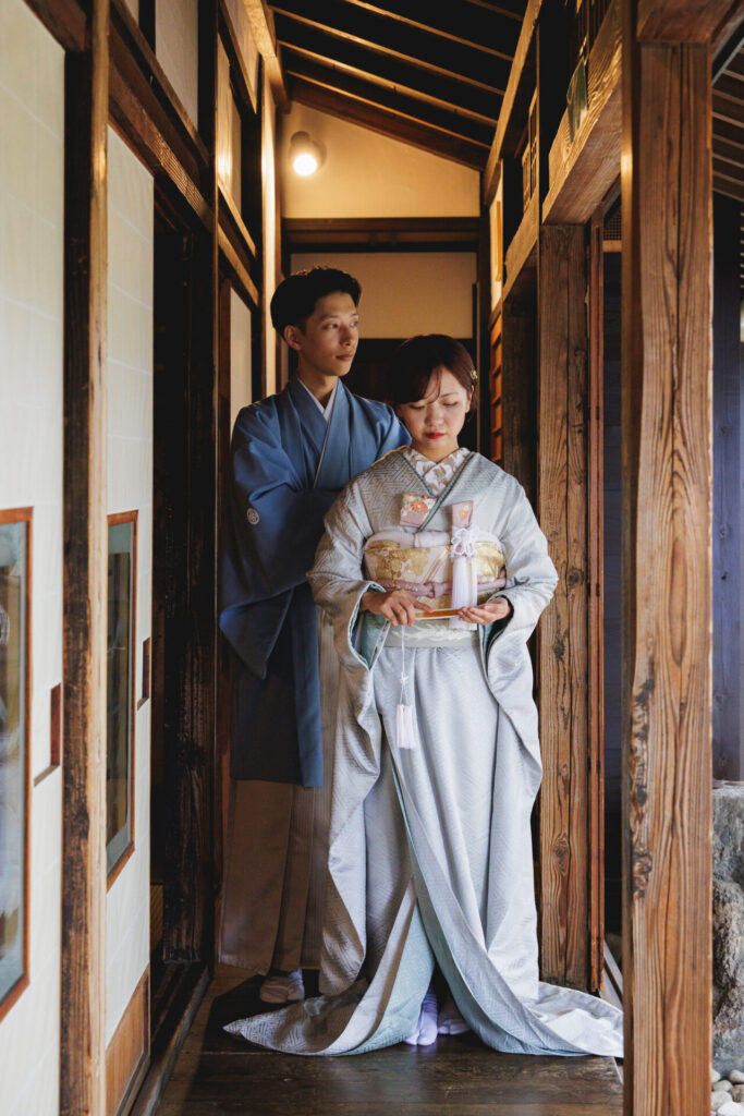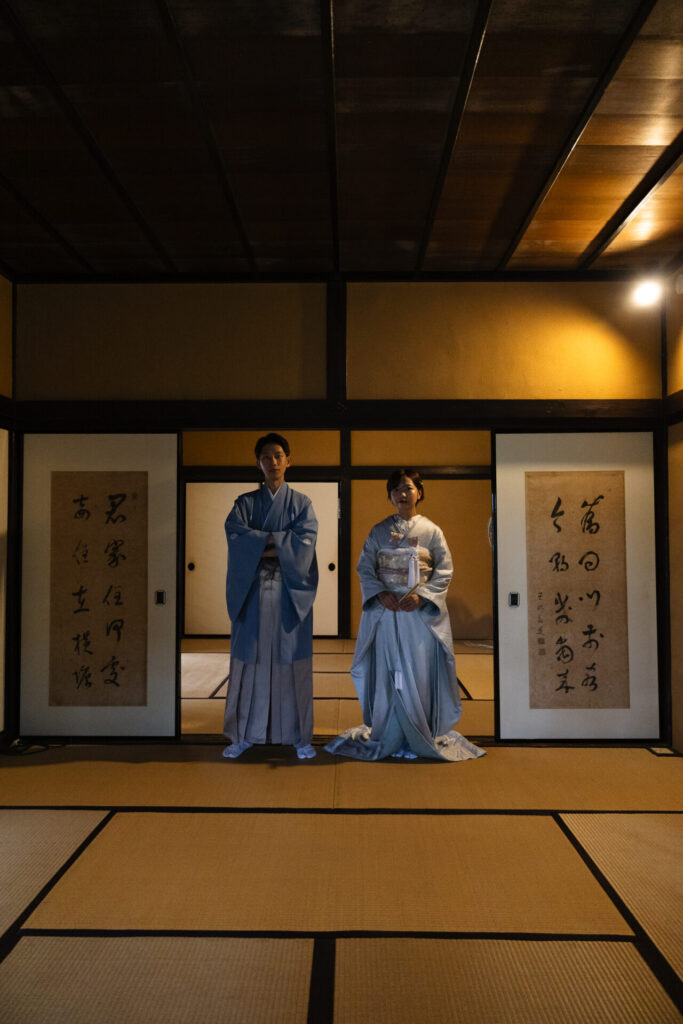 武家屋敷「旧田村家」では、障子を通り抜ける柔らかな光が、お二人の肌を優しく包み込みます。